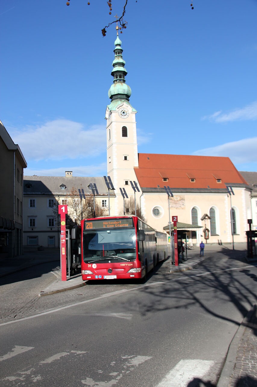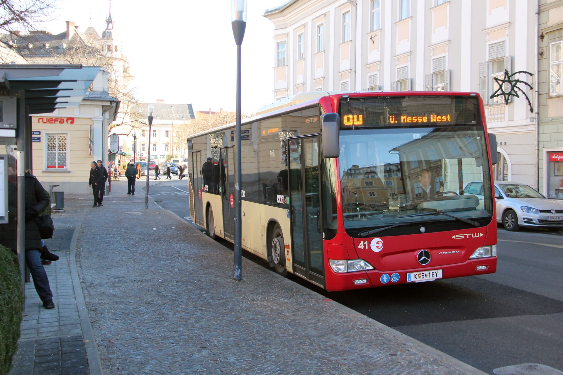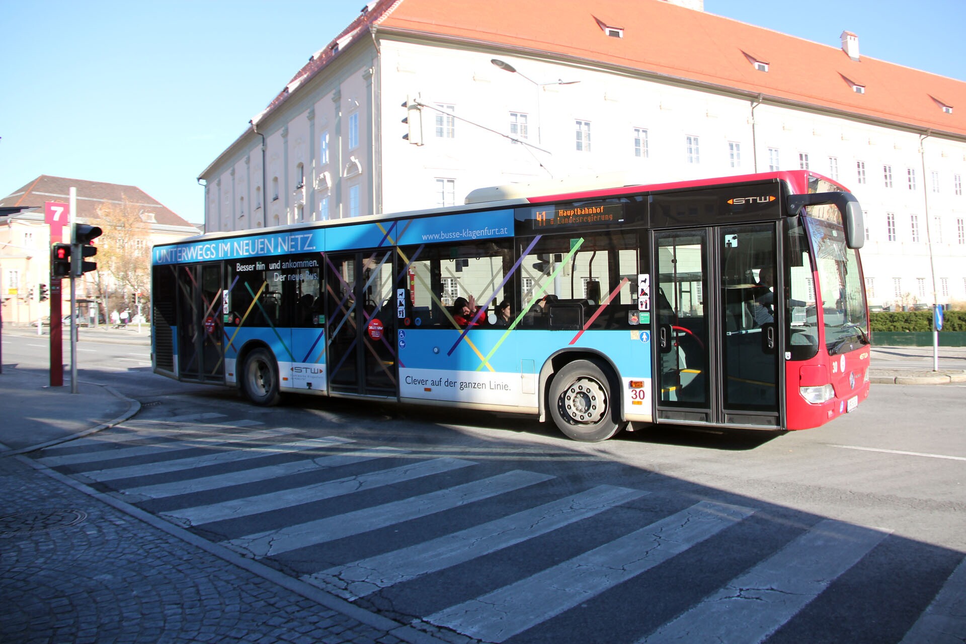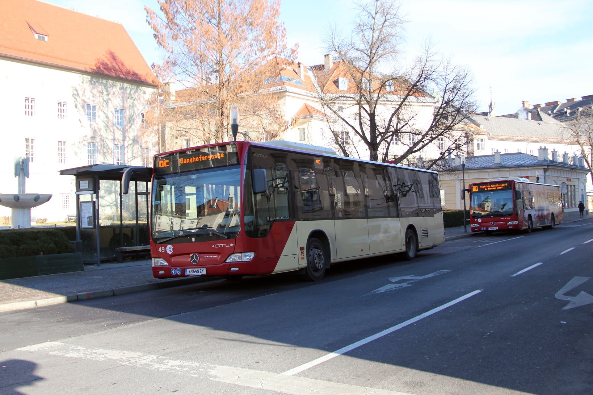 Die Flotte besteht aus Mercedes Citaros und die Farben sind rot und beige. Meist handelt es sich um Mercedes Citaro Facelift.