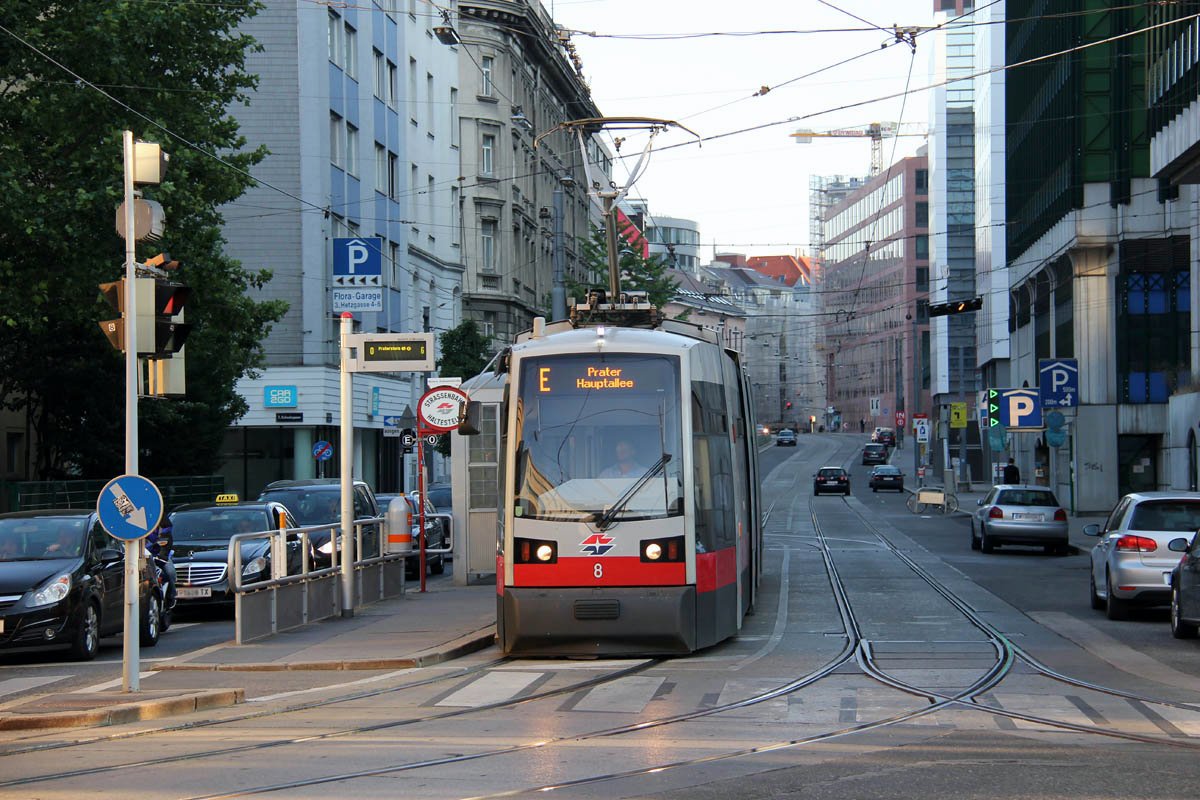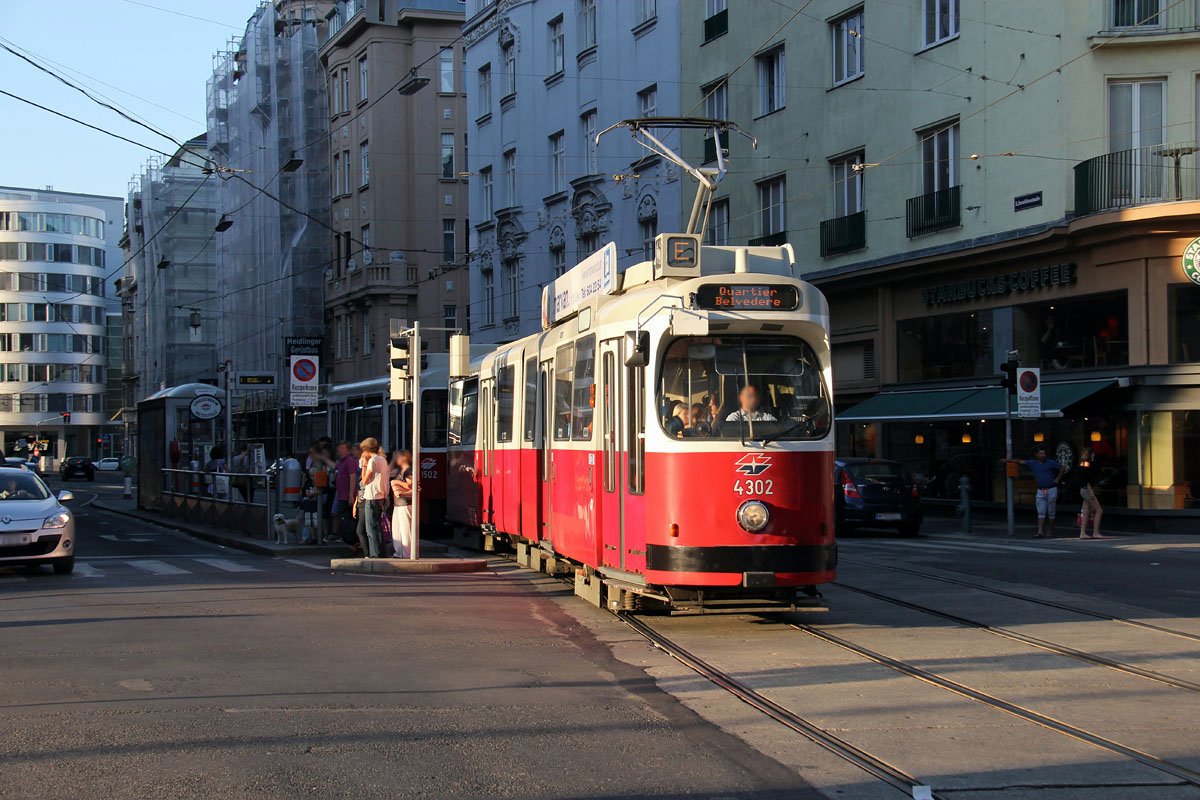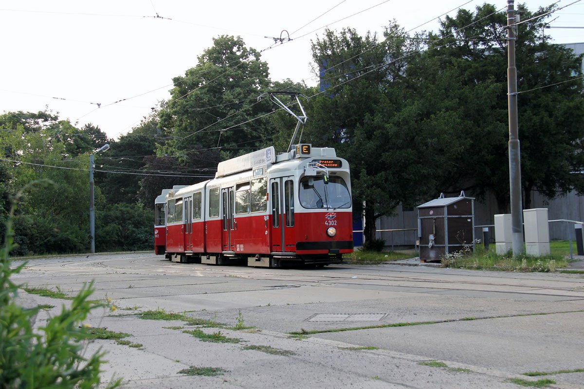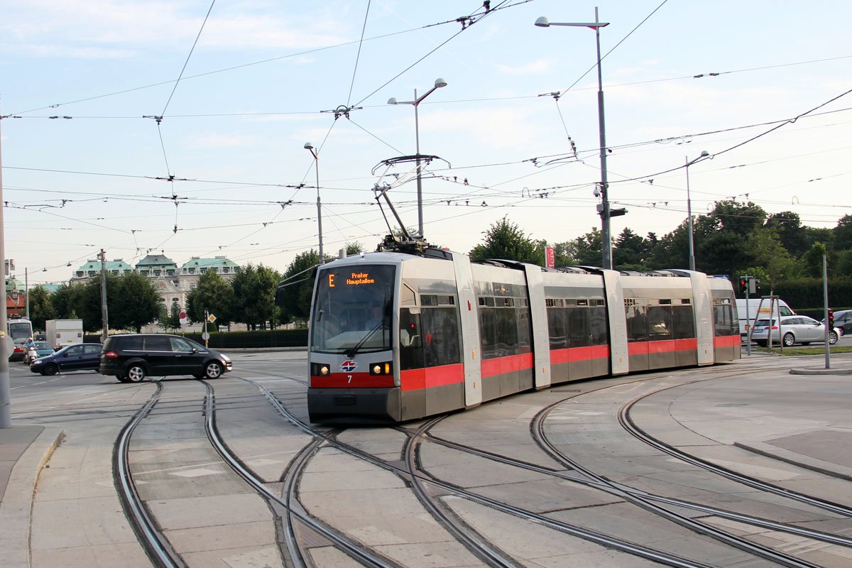 In summer 2013 tram line E is in service as a partly replacement line for line 1 between Quartier Belvedere and Prater Hauptallee.