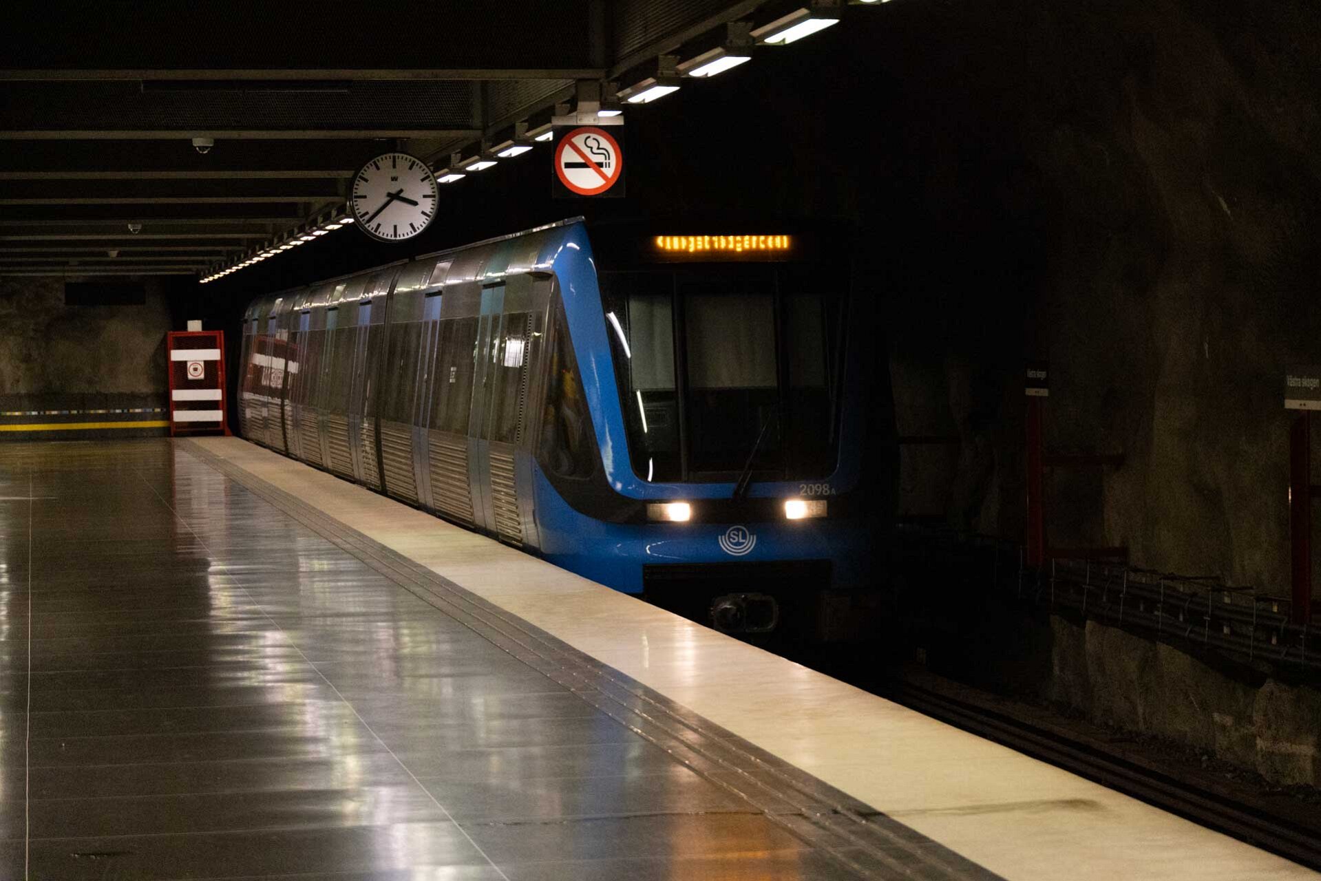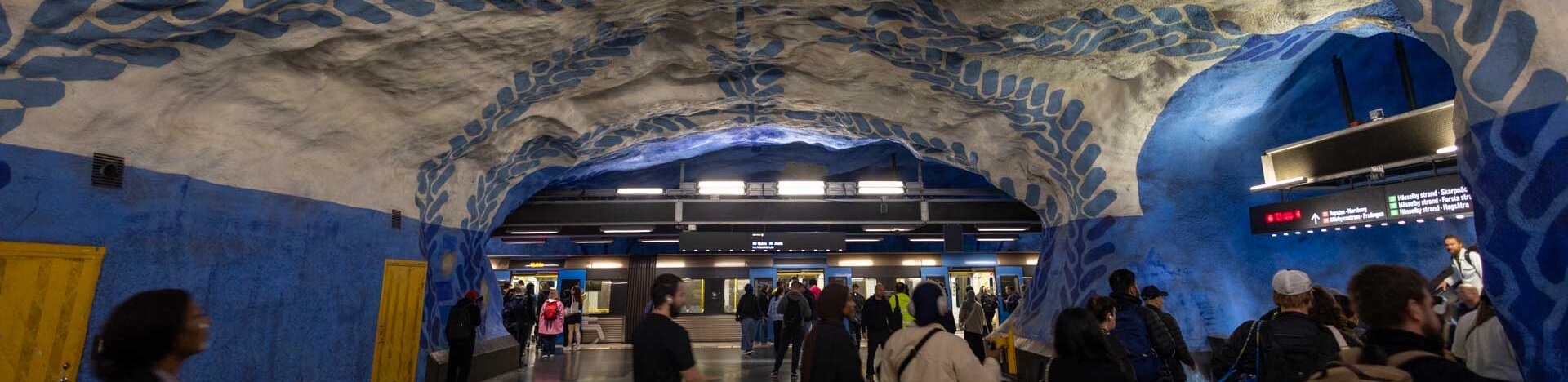The blue line comprises lines 10 and 11 and has a total length of 25.5 km. It runs from the north-west into the city centre, with Kungsträdgården station serving as its terminus. At least until 2030, as it is due to be extended southwards at that point and will also take over the south-western branch of the current green line 19.