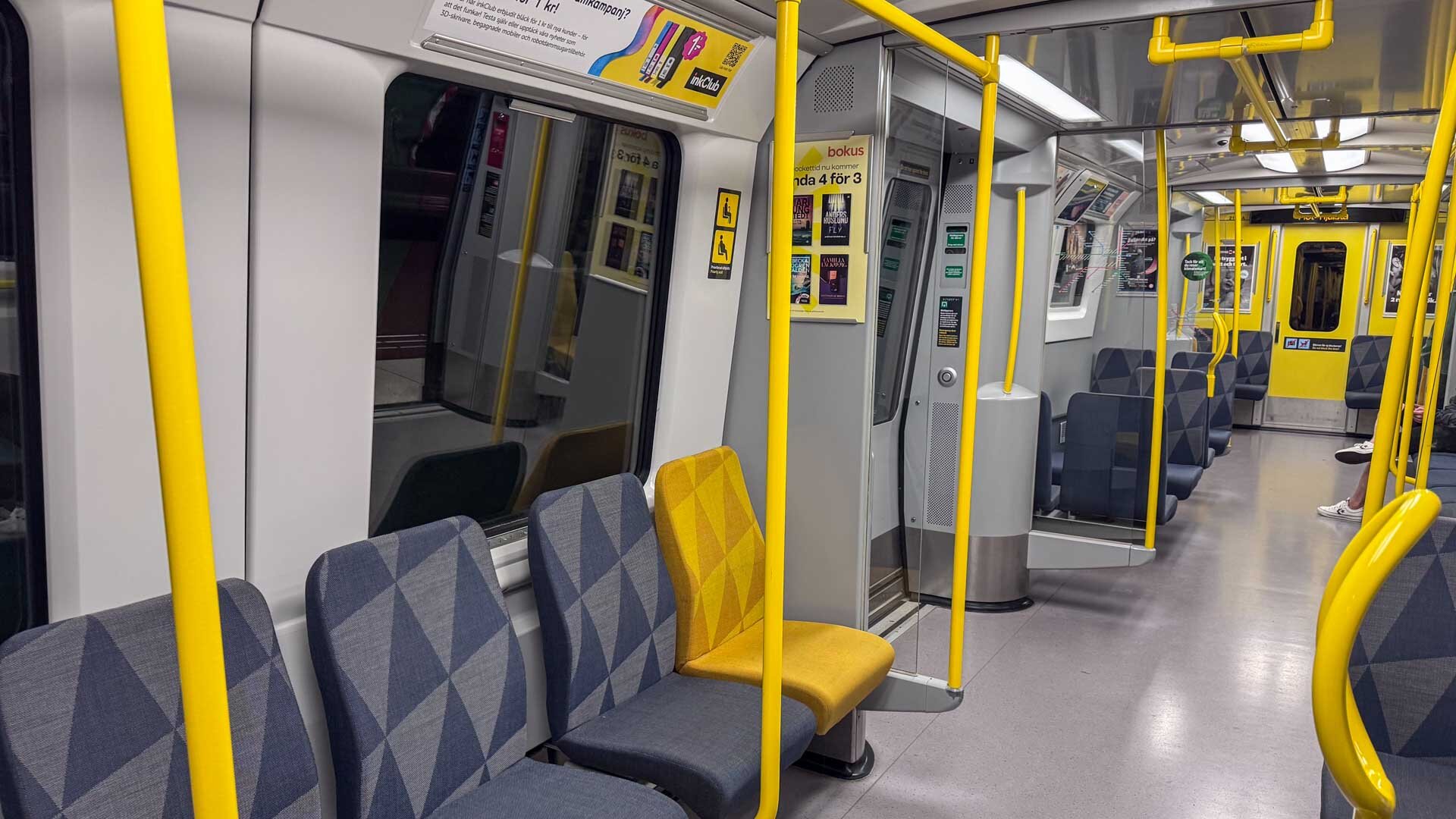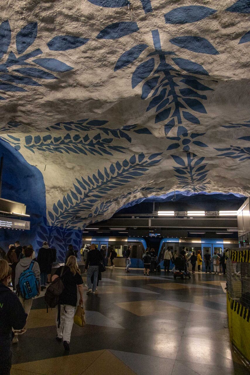 Die blaue Linie besteht aus den Linien 10 und 11 und hat eine Gesamtlänge von 25,5 km. Sie führt vom Nordwesten in das Zentrum, die Station Kungsträdgården bildet da die Endstelle. Zumindest bis 2030, denn dann soll sie nach Süden verlängert werden und auch den südwestlchen Ast der derzeitigen grünen Linie 19 übernehmen.