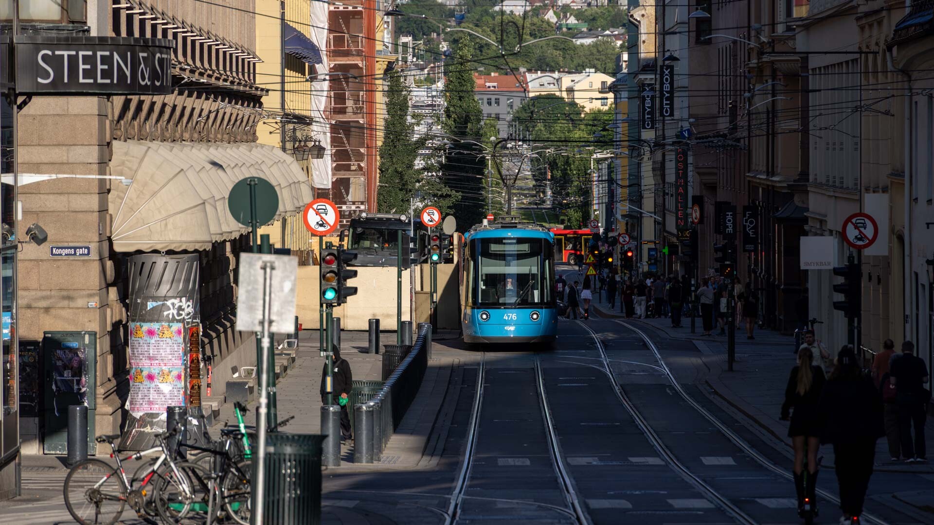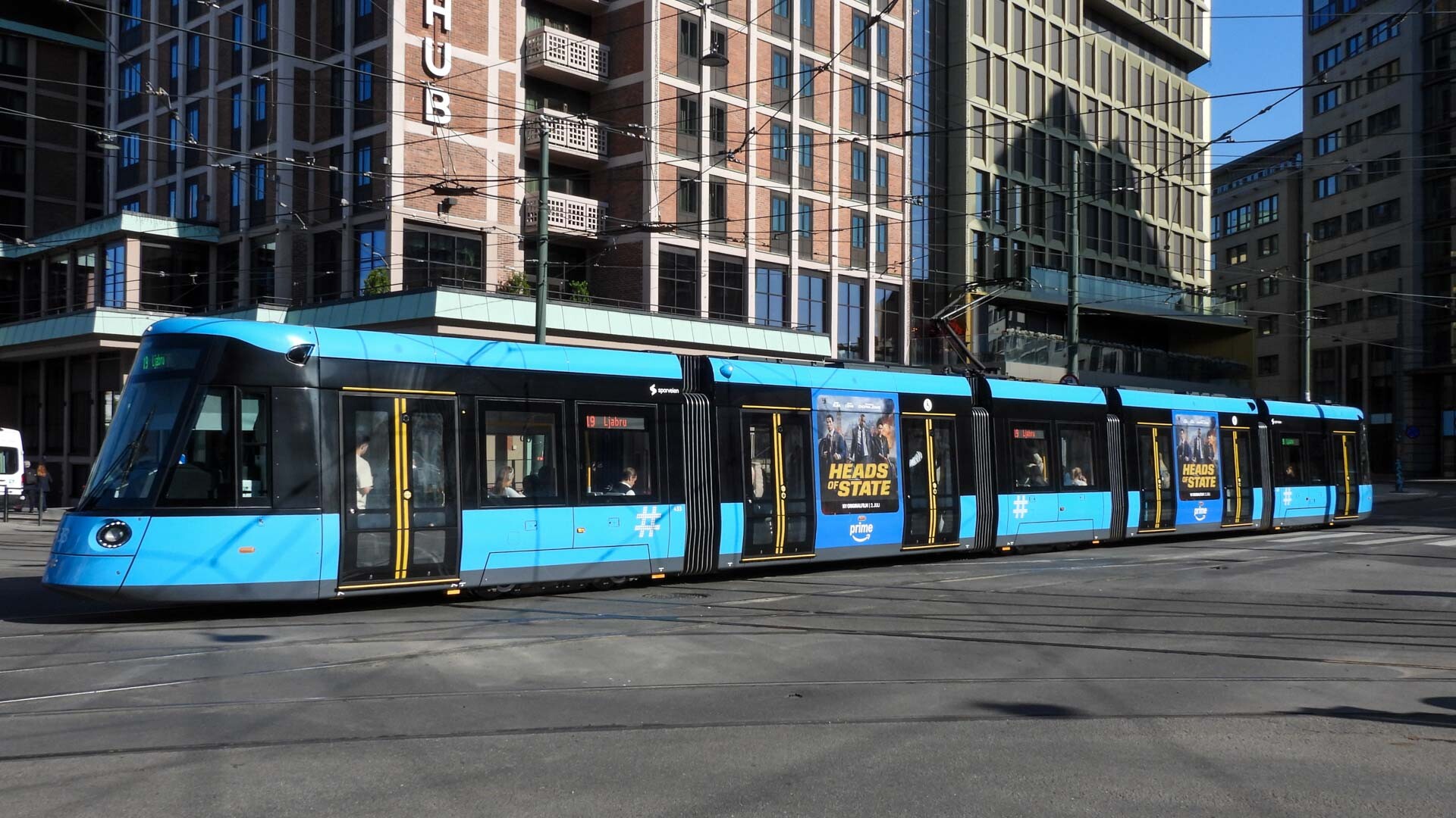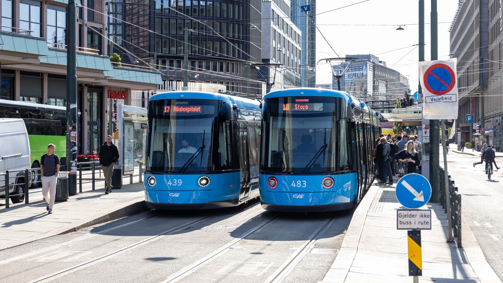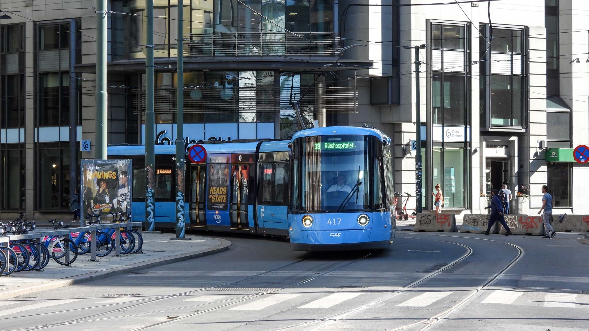 The SL (for Sporvogn Ledd) 18 (ordered in 2018) are five-section CAF Urbos 100s, which started regular service in April 2022. 87 trams were delivered, replacing the SL79 and SL95.