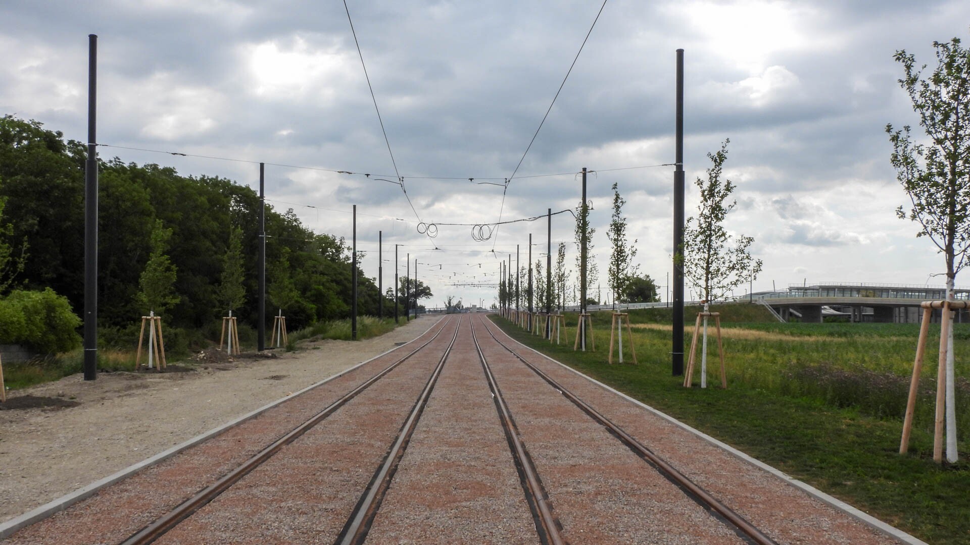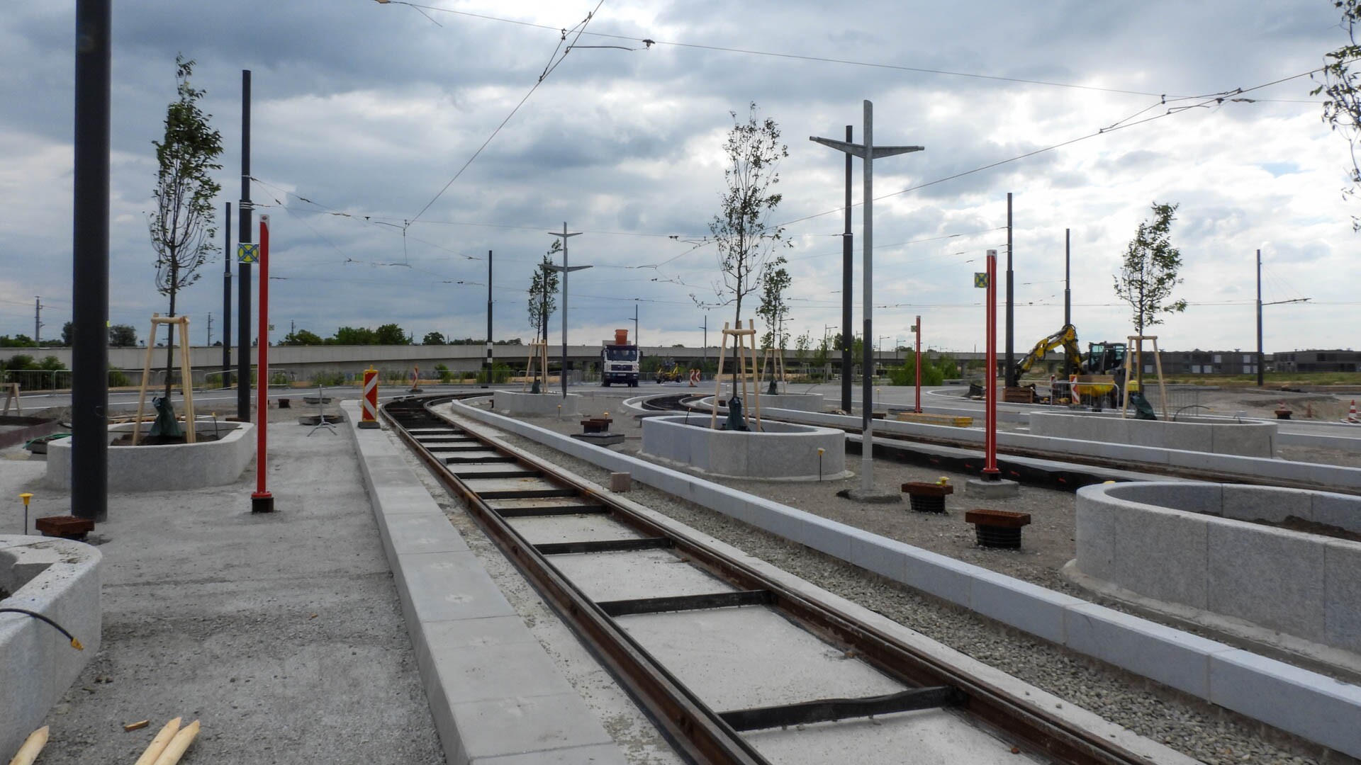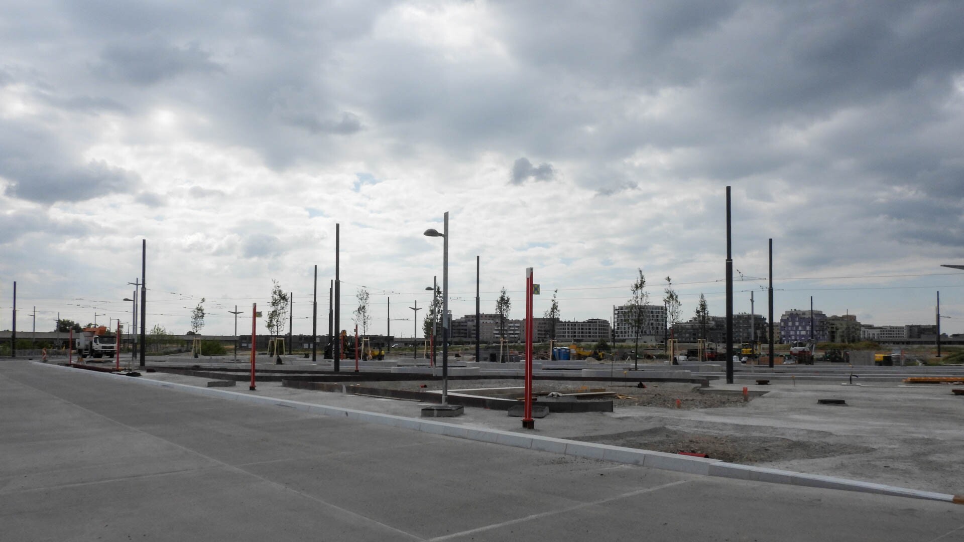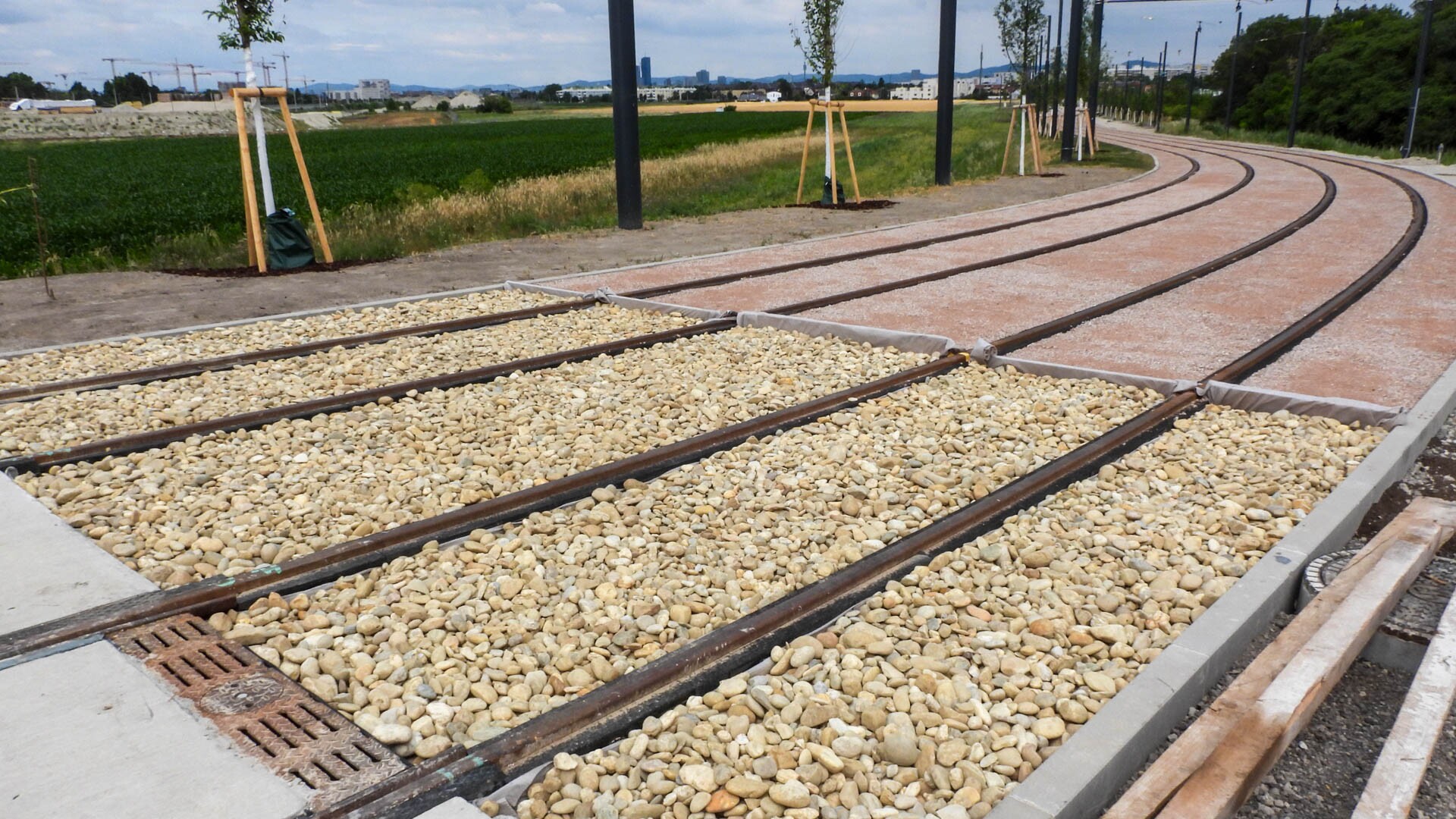 Ende Juni 2025: die Gleise liegen, die Oberleitung ist zu großen Teilen bereits vorhanden und wo sich die Haltestellen befinden werden, ist auch schon sichtbar. Die Endstelle bei der U-Bahnstation Aspern Nord nimmt auch schon Formen an. Unseren Gang haben wir auch dort gastartet.
