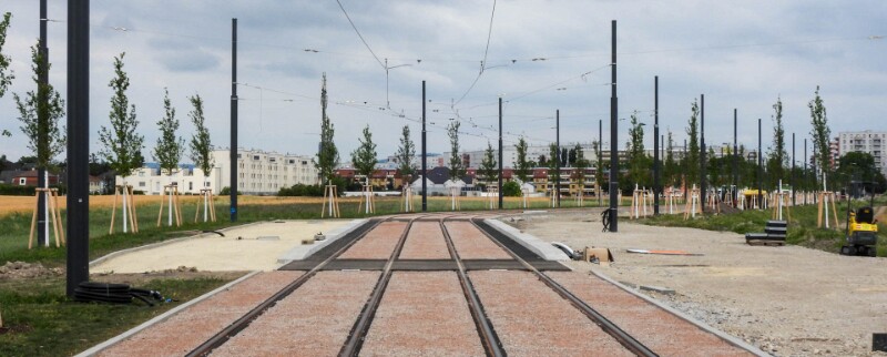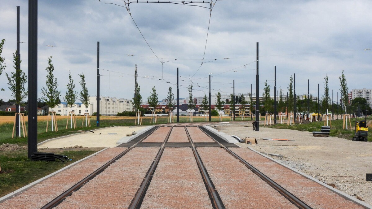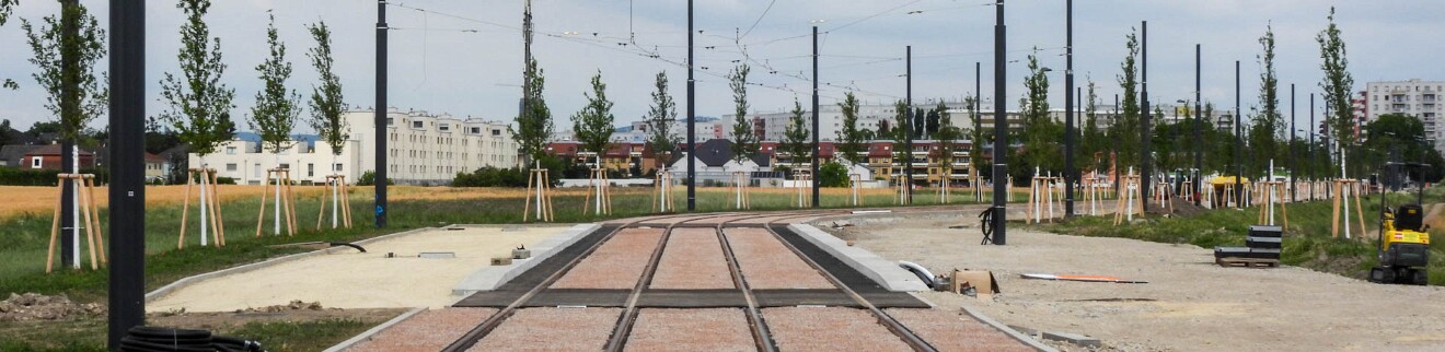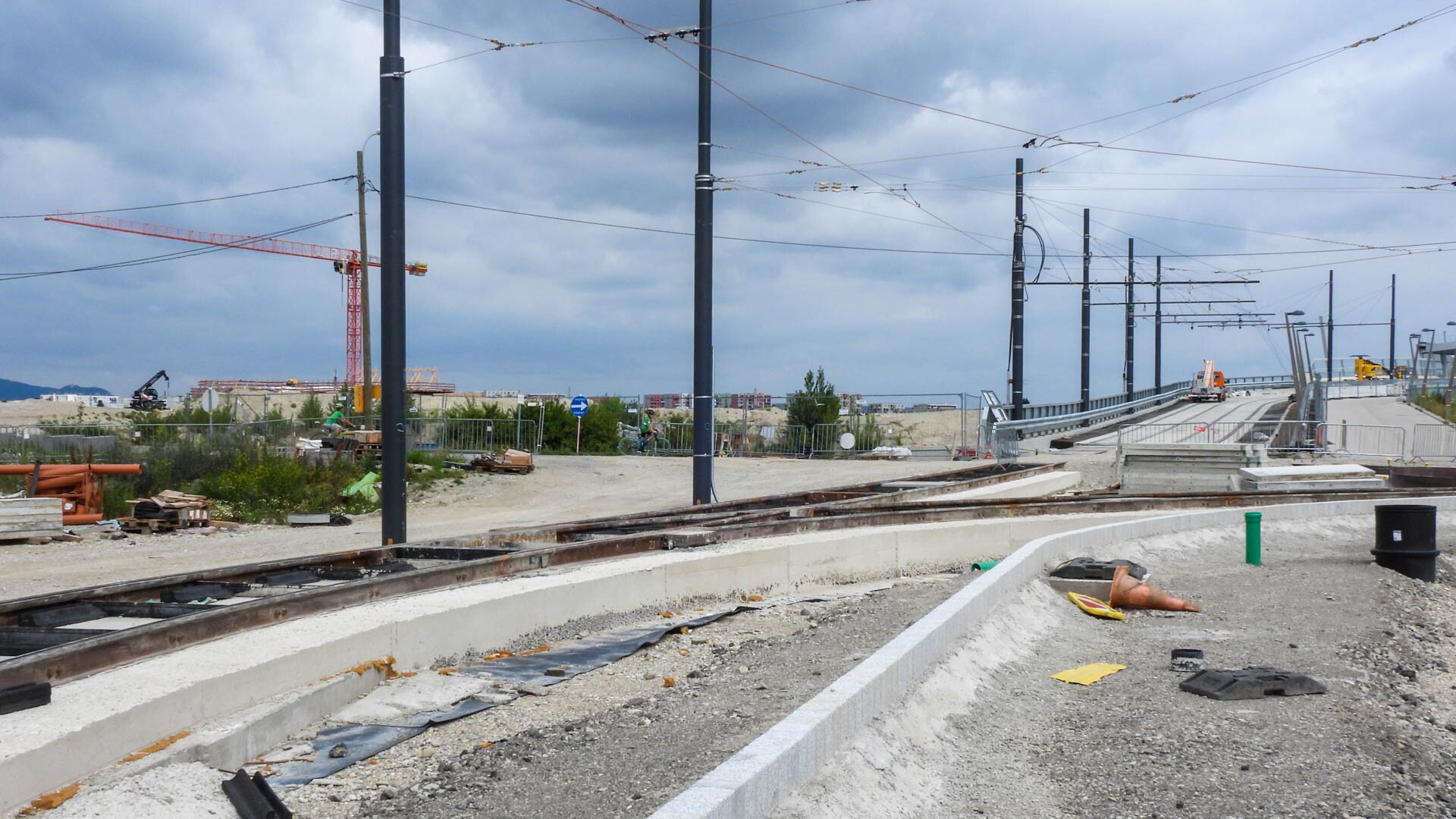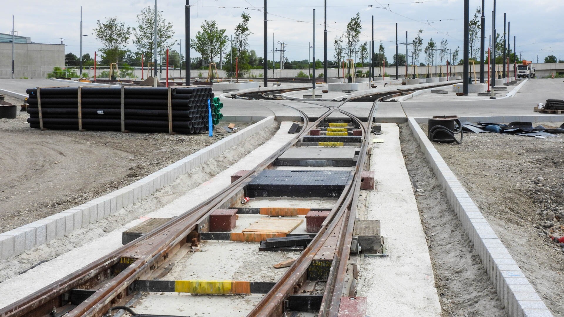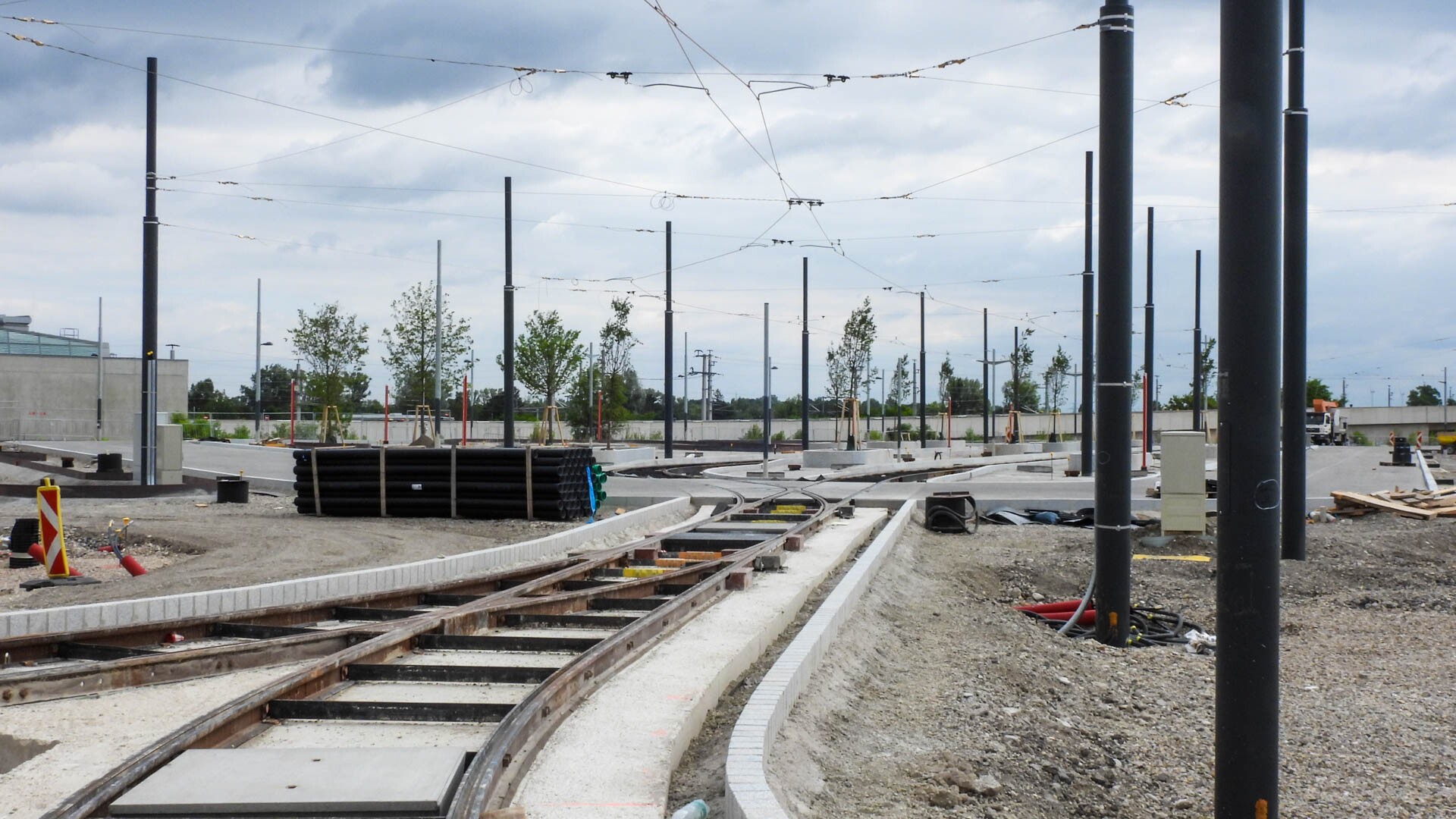 Ende Juni 2025: die Gleise liegen, die Oberleitung ist zu großen Teilen bereits vorhanden und wo sich die Haltestellen befinden werden, ist auch schon sichtbar. Die Endstelle bei der U-Bahnstation Aspern Nord nimmt auch schon Formen an. Unseren Gang haben wir auch dort gastartet.