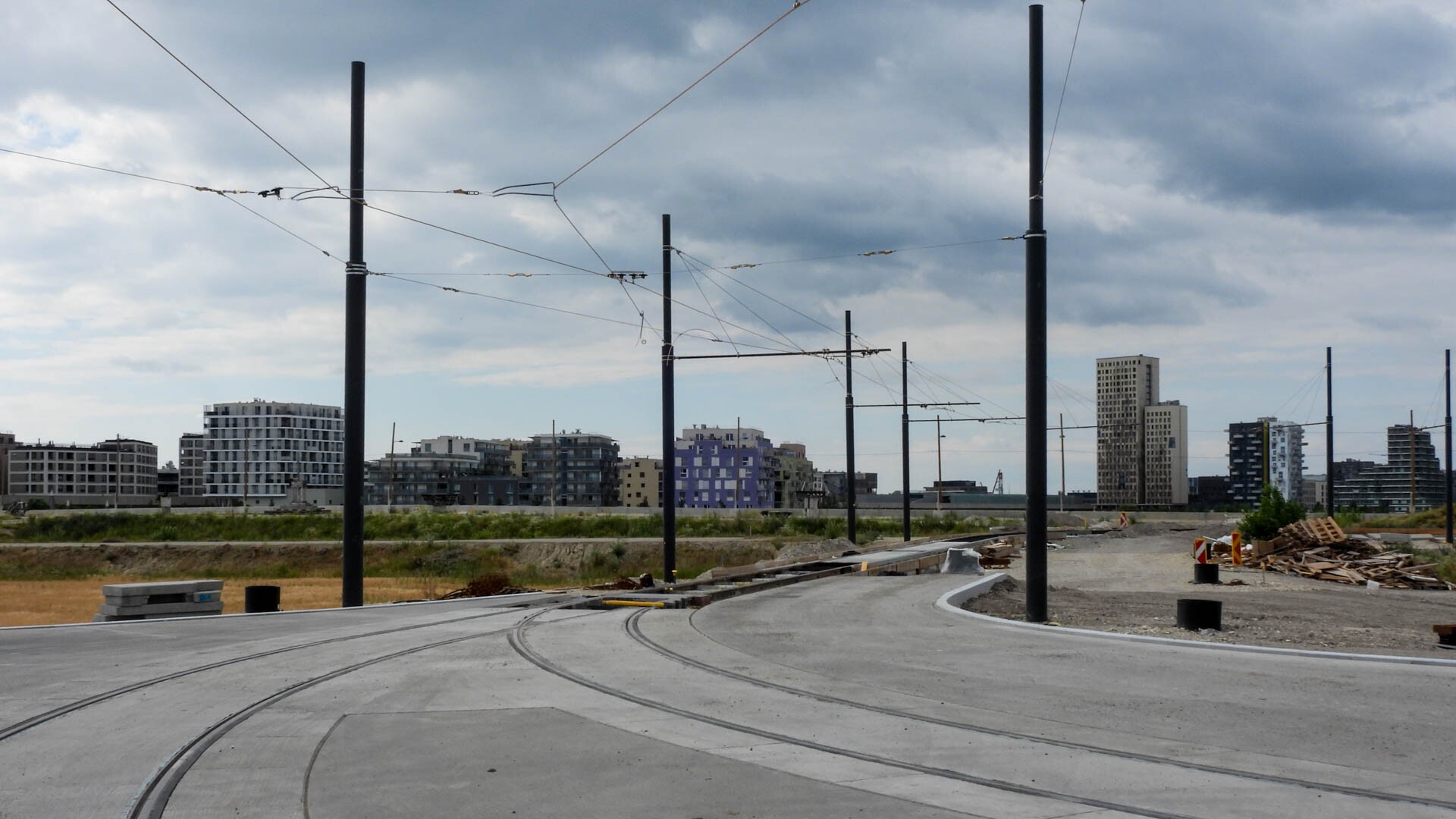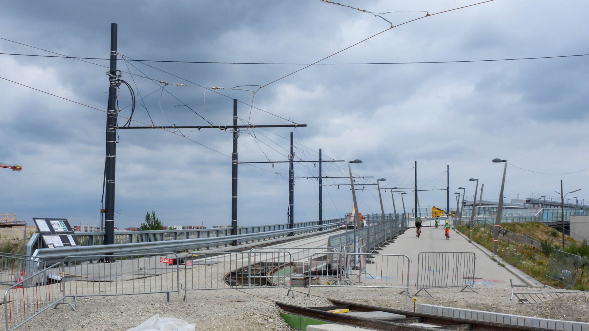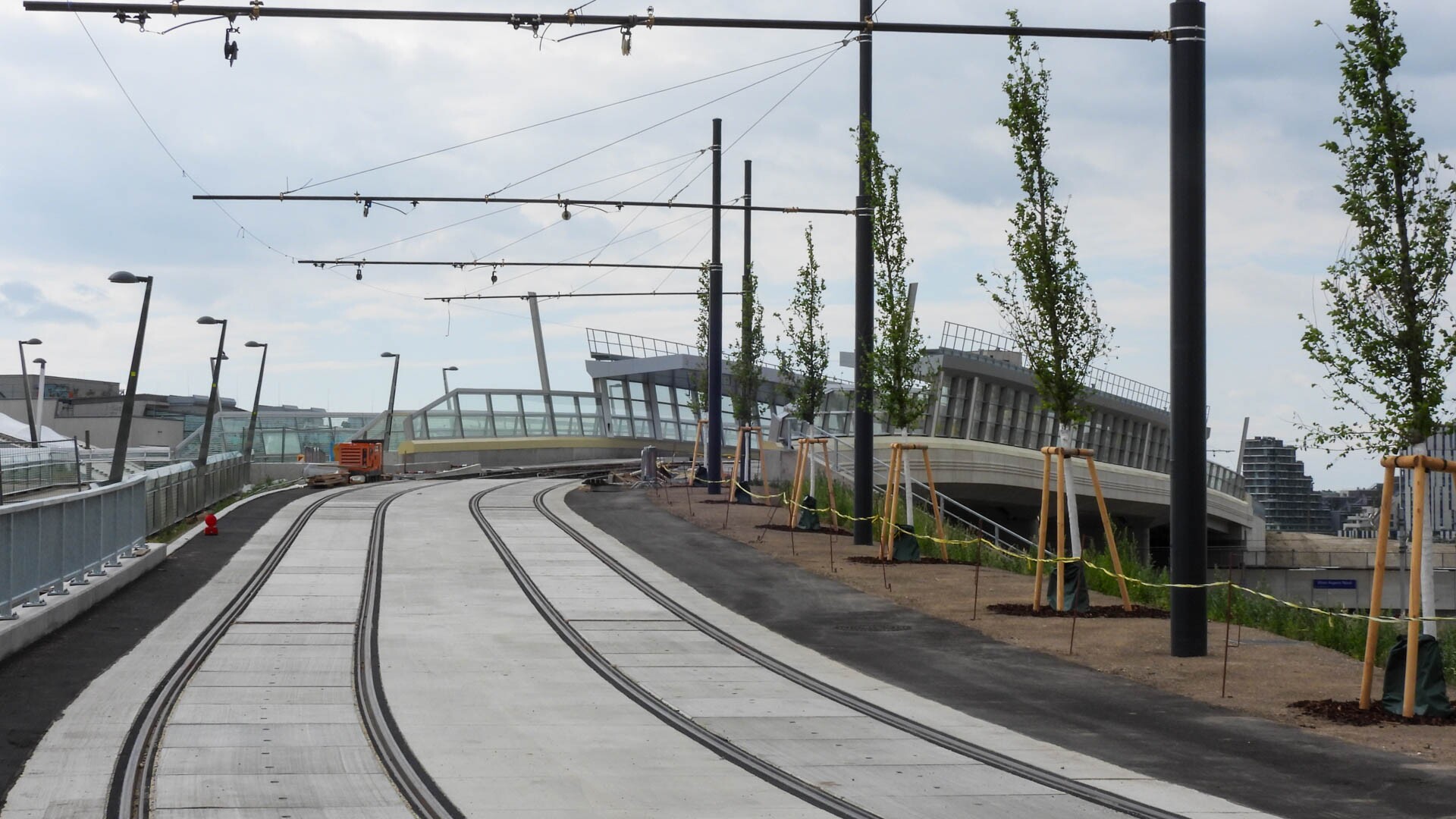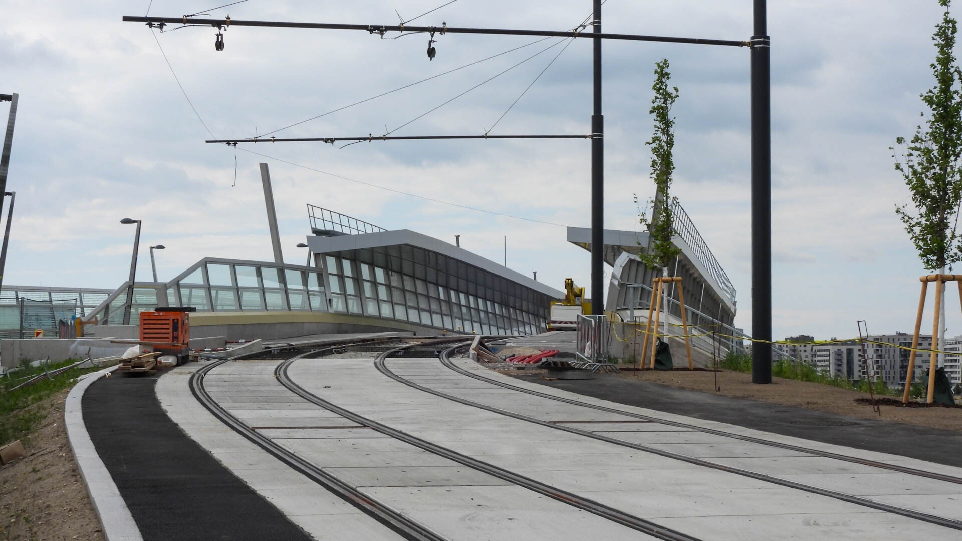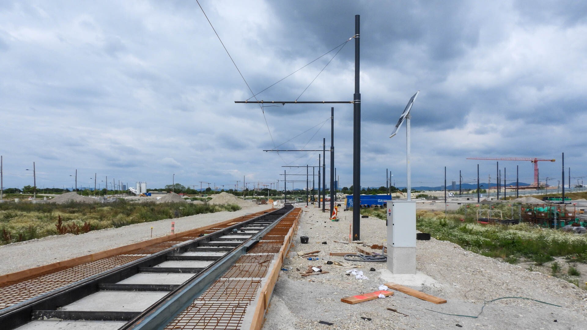 End of June 2025: the tracks are in place, most of the catenary is already in place and you can already see where the stops will be located. The terminus at Aspern Nord underground station is also already taking shape. We also started our tour there.